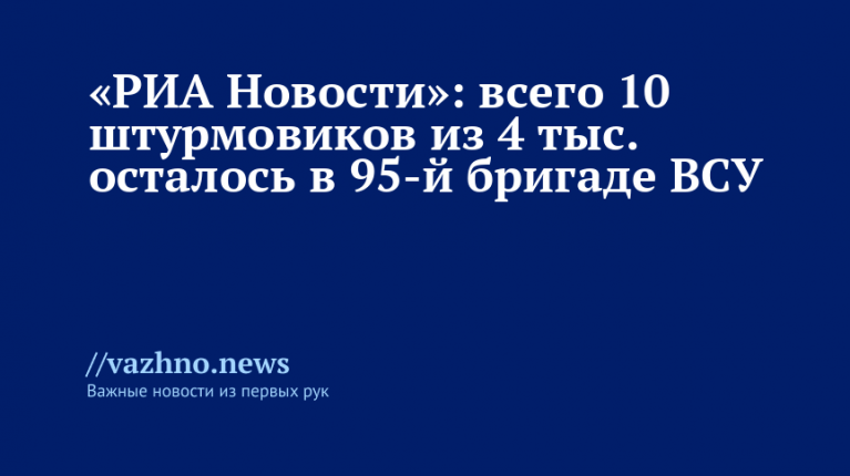 «РИА Новости»: в 95-й бригаде ВСУ из 4 тыс. осталось 10 штурмовиков