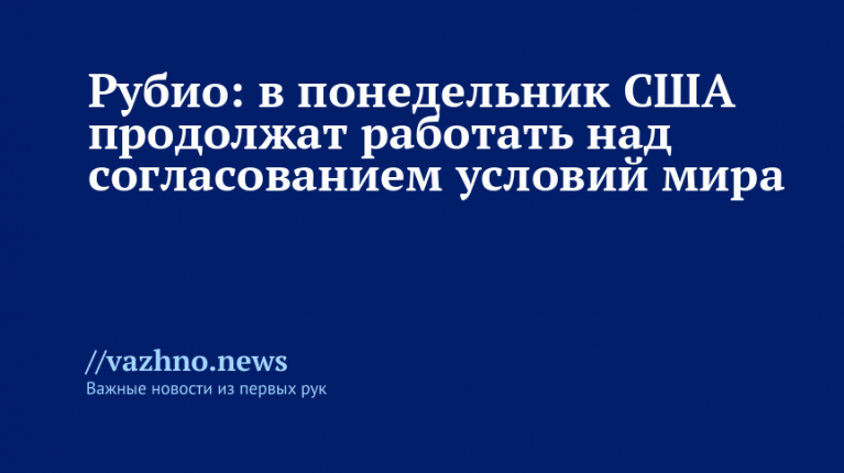 Рубио: США в понедельник продолжат согласовывать условия мира