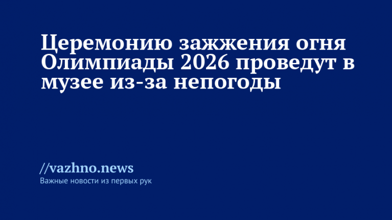 В связи с неблагоприятной погодой официальная церемония зажжения олимпийского огня для зимних Олимпийских игр 2026 года в Италии перенесена и состоится 26 ноября в Археологическом музее Древней Олимпии. Об этом сообщается на сайте Национального олимпийского комитета (НОК) Греции.
