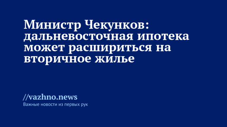 Чекунков: дальневосточная ипотека может покрыть вторичное жильё