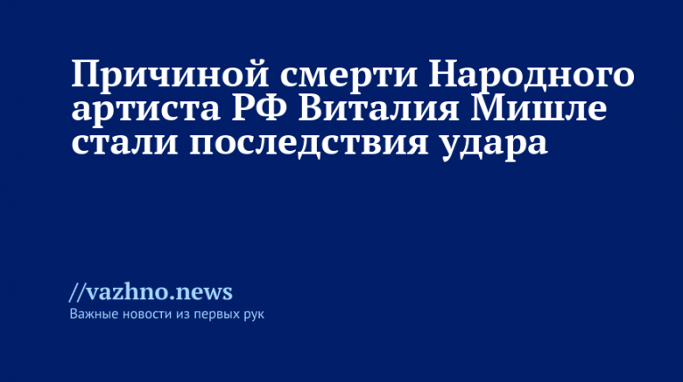 Причиной смерти народного артиста РФ Виталия Мишле — последствия удара