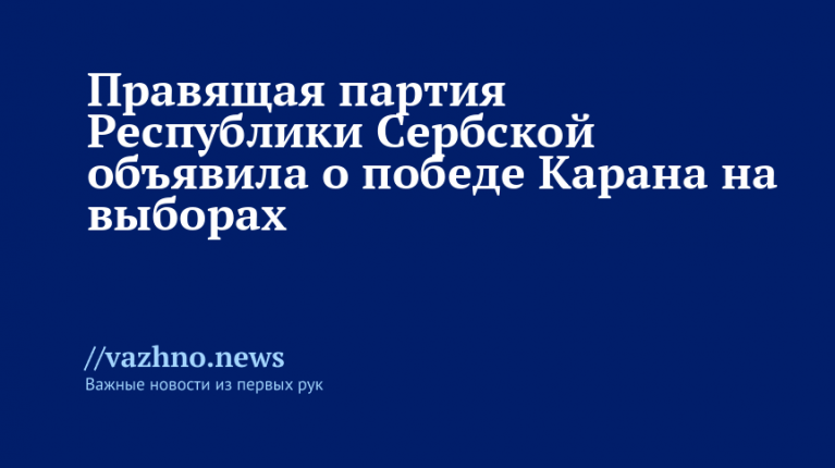 Правящая в Республике Сербской (РС, энтитет в составе Боснии и Герцеговины) партия «Союз независимых социал-демократов» (СНСД) объявила о победе своего кандидата Синиши Карана на досрочных выборах президента. Эту информацию партия разместила в заявлении на своей странице в соцсети Х (бывш. Twitter).
