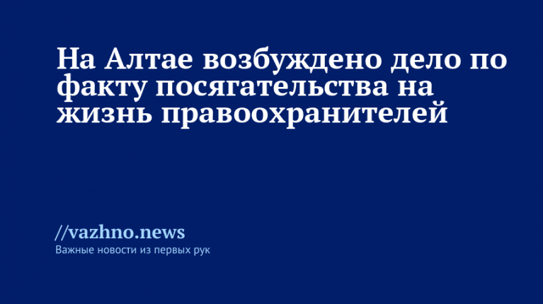 В Алтайском крае возбуждено уголовное дело в связи с посягательством на жизнь сотрудников правоохранительных органов. Об этом 24 ноября рассказала старший помощник руководителя следственного управления (СУ) Следственного комитета (СК) России по региону Людмила Рязанцева.