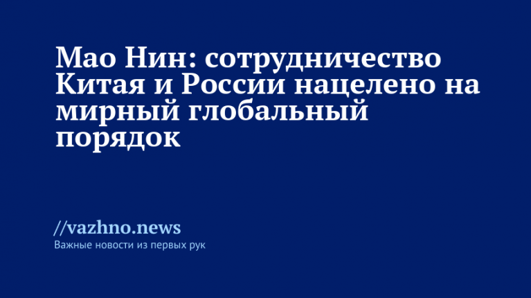 «Китай и Россия развивают двусторонние отношения и осуществляют прагматическое сотрудничество на основе принципов неприсоединения, отсутствия конфронтации и ненаправленности в отношении третьих сторон, способствуя глобальному мирному развитию», — приводит ее слова ТАСС.