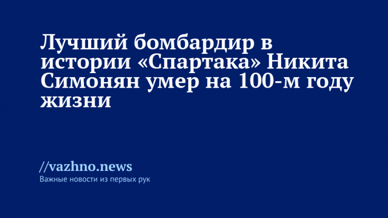 Никита Симонян — смертьНикита Симонян умер 23 ноября 2025 года в возрасте 99 лет. Об этом сообщил президент Союза ветеранов футбола России Александр Мирзоян. По его словам, мужчина почувствовал себя плохо 20 ноября, после чего его госпитализировали. Врачи боролись за его жизнь, но спасти не смогли.
