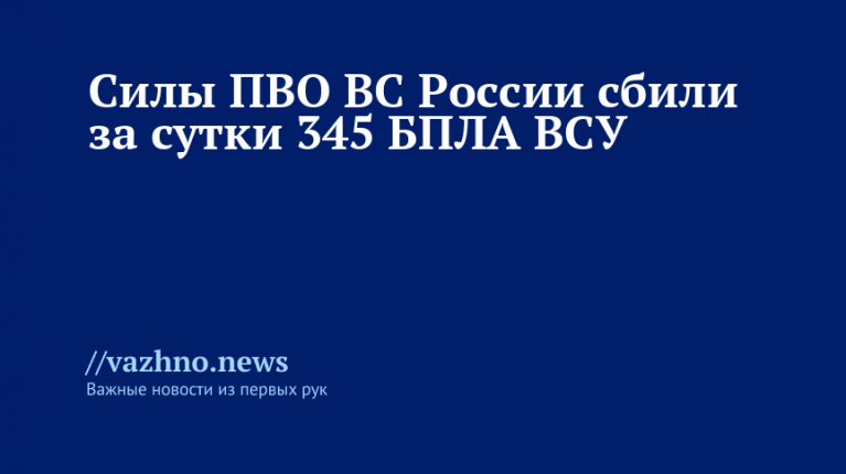 «Средствами противовоздушной обороны сбиты 345 беспилотных летательных аппаратов самолетного типа», — говорится в заявлении ведомства.