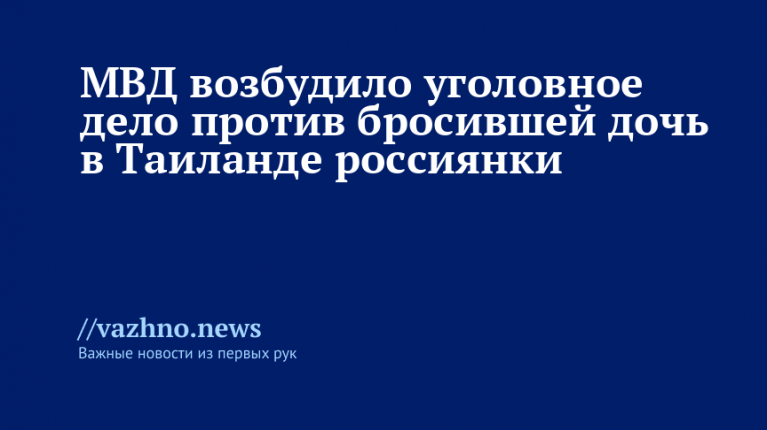МВД России возбудило уголовное дело в отношении жительницы Приморского края Эрики Владыко, которая оставила свою четырехлетнюю дочь в опасности в Таиланде. Об этом 24 ноября сообщила официальный представитель МВД Ирина Волк.