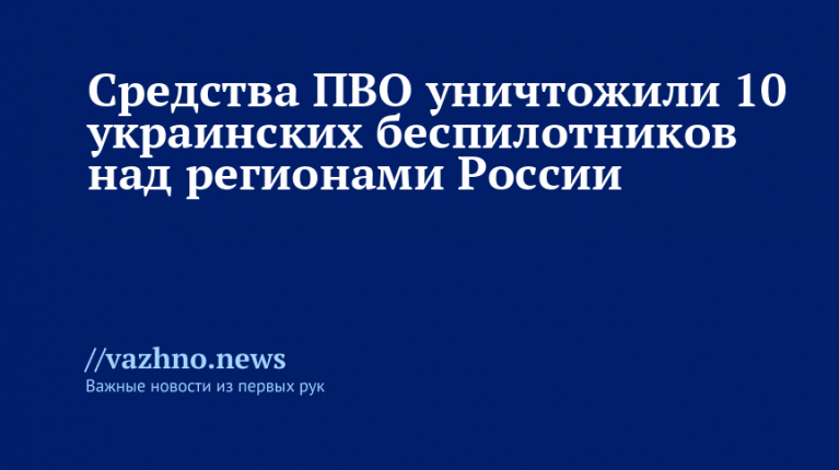 ПВО уничтожили 10 украинских беспилотников над регионами России