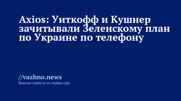 Axios: Уиткофф и Кушнер по телефону зачитали Зеленскому план