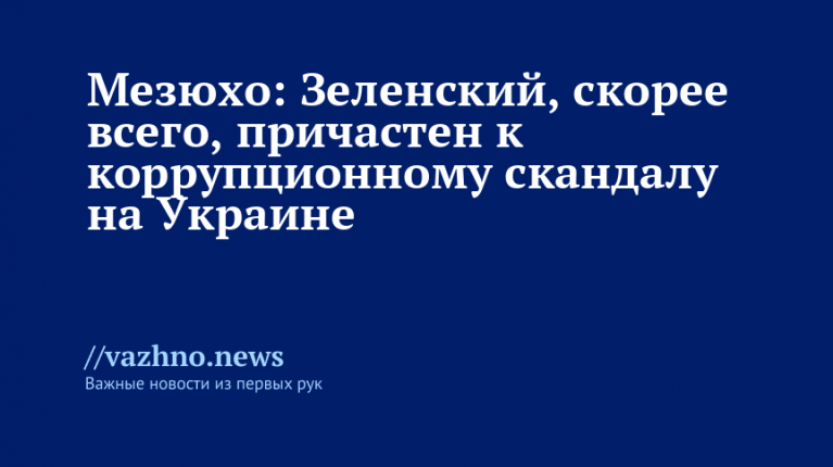 Мезюхо не исключил, что у американских кураторов может иметься более серьёзный компромат непосредственно на Владимира Зеленского, который способен быть обнародован в любой момент.