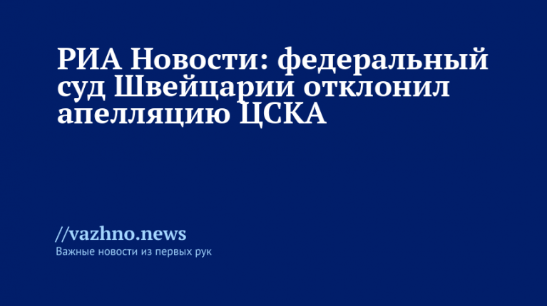 Федеральный суд Швейцарии отклонил апелляцию московского ЦСКА по делу о выплатах в связи с бывшим футболистом клуба, хорватом Николой Влашичем. Об этом 24 ноября сообщает «РИА Новости».