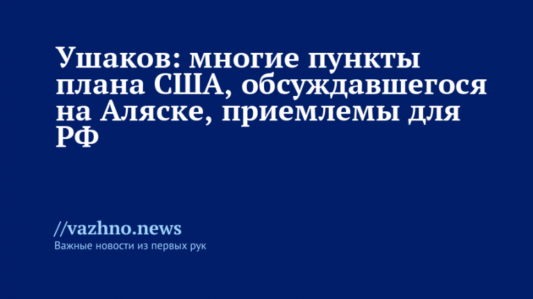 «Мы были ознакомлены с одним вариантом, который идет в русле тех пониманий, которые были достигнуты на Аляске. И поэтому многие, я бы сказал, не все, но многие положения этого плана, они нам представляются вполне приемлемыми», — сказал Ушаков.