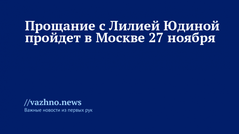 Прощание с Лилией Юдиной состоится 27 ноября в Москве