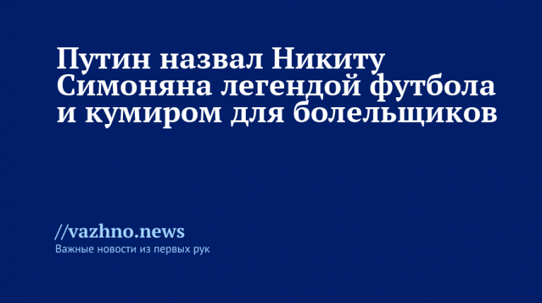 Путин: Никита Симонян — легенда футбола и кумир болельщиков