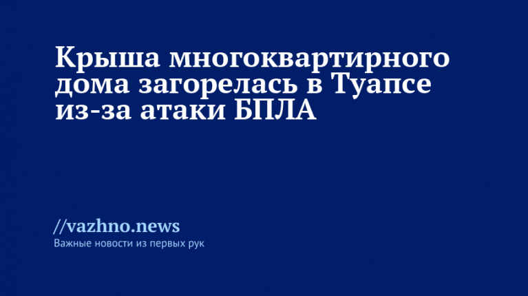 В Туапсе Краснодарского края в ходе атаки беспилотных летательных аппаратов (БПЛА) загорелась крыша одного из многоквартирных жилых домов. Об этом 25 ноября в своем Telegram-канале сообщил глава Туапсинского муниципального округа Сергей Бойко.