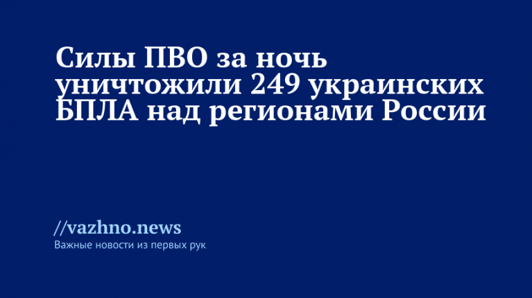 «В течение прошедшей ночи дежурными средствами ПВО перехвачены и уничтожены 249 украинских беспилотных летательных аппаратов самолетного типа», — сказано в сообщении в Telegram-канале ведомства.