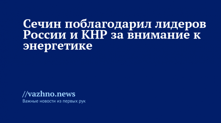 Сечин поблагодарил лидеров России и Китая за внимание к энергетике