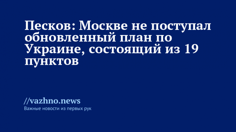 Песков: Москве не поступал обновлённый 19-пунктный план по Украине