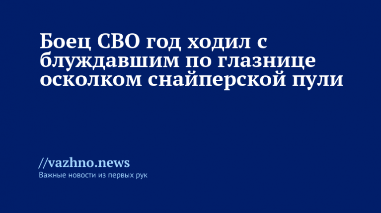 В течение года участник специальной военной операции (СВО) носил в глазнице блуждающий осколок снайперской пули. Информацию об этом 24 ноября распространила пресс-служба Жуковской областной клинической больницы (ОКБ).