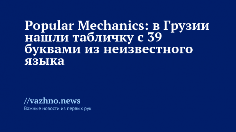 Археологи, работавшие в районе озера Башплеми в Грузии, наткнулись на древнюю табличку из базальта, на которой высечено 39 символов, не соответствующих ни одному из известных алфавитов. Ученые предполагают, что эти надписи могут помочь в расшифровке неизвестного языка. Об открытии 22 ноября сообщил журнал Popular Mechanics.