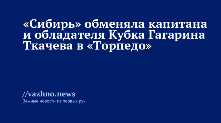 «В результате обмена между «Торпедо» и «Сибирью» к нашей команде присоединился обладатель Кубка Гагарина Владимир Ткачёв», — сказано в сообщении в Telegram-канале.