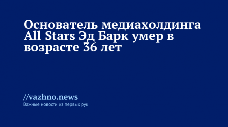 Основатель и президент медиахолдинга All Stars Эдуард Барк, работавший с Димой Биланом, скончался на 37-м году жизни от остановки сердца. Об этом сообщила пресс-служба компании 25 ноября.