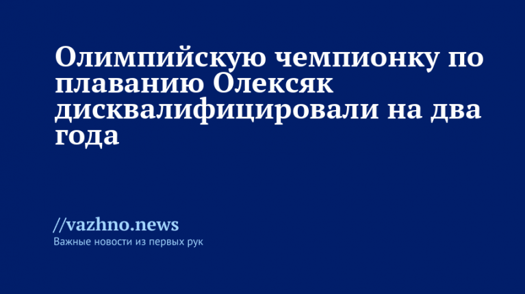 Двухлетняя дисквалификация была назначена олимпийской чемпионке по плаванию Пенелопе Олексяк из Канады. Об этом 25 ноября сообщается на сайте Международного агентства допинг-тестирования (ITA).
