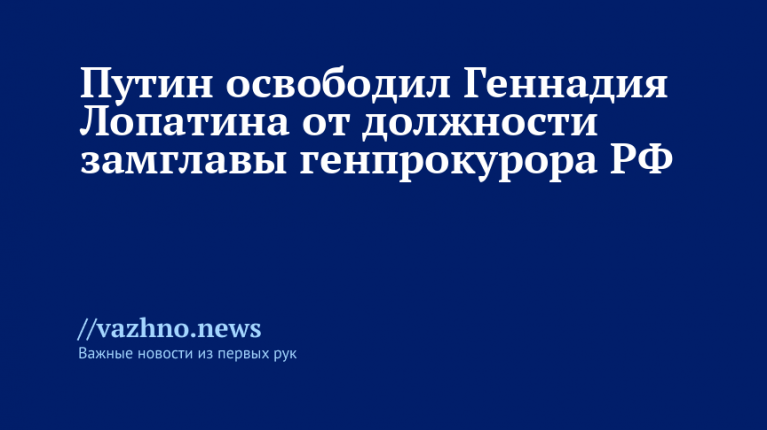 «Освободить Лопатина Геннадия Борисовича от должности заместителя генерального прокурора РФ», — говорится в указе.