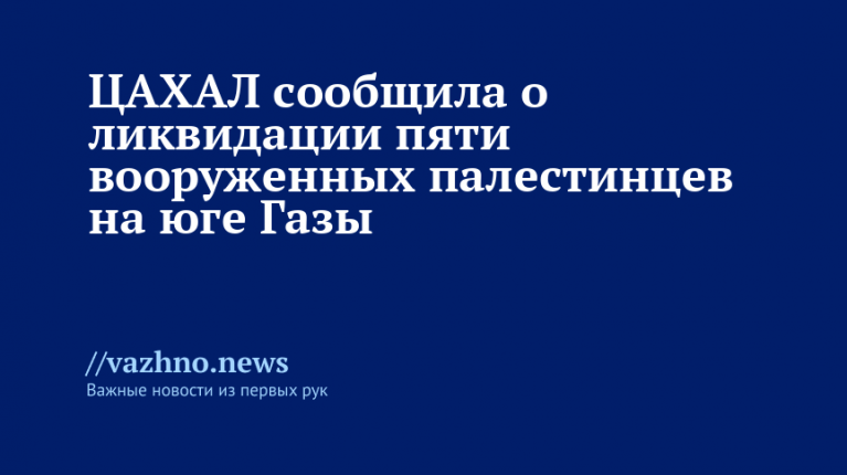 ЦАХАЛ: на юге Газы ликвидированы пять вооружённых палестинцев
