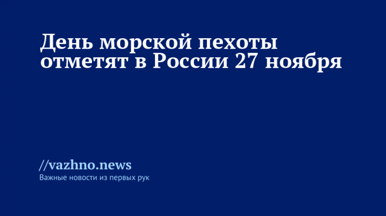 День морской пехоты в 2025 году — история праздникаСам праздник сравнительно молод. Он был учрежден по приказу главнокомандующего Военно-морским флотом России в 1996 году. В 2024 году День морской пехоты включили в список официальных профессиональных праздников и памятных дат Вооруженных сил РФ.