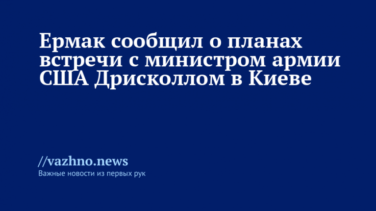 В своем Telegram-канале он привел такие слова: «Только что говорил с министром Сухопутных войск США Дэниелом Дрисколлом. Как и определено президентом [США Дональдом] Трампом, уже на этой неделе ожидаем министра в Киеве», — написал Ермак в своем Telegram-канале.