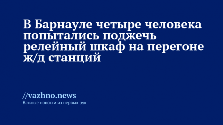В Барнауле произошла попытка поджога релейного шкафа на перегоне железнодорожных станций: в этом деянии подозреваются четыре человека, двое из которых — подростки. Сообщение об этом 26 ноября появилось в Telegram-канале транспортной прокуратуры Сибири.