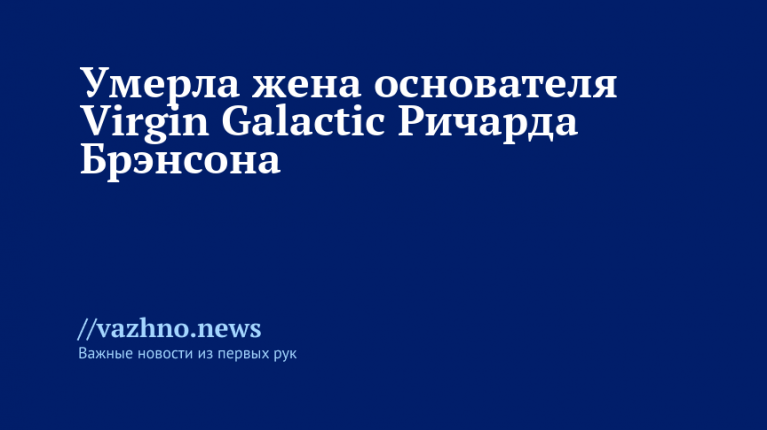 Причина смерти супруги основателя Virgin Galactic не раскрывается.