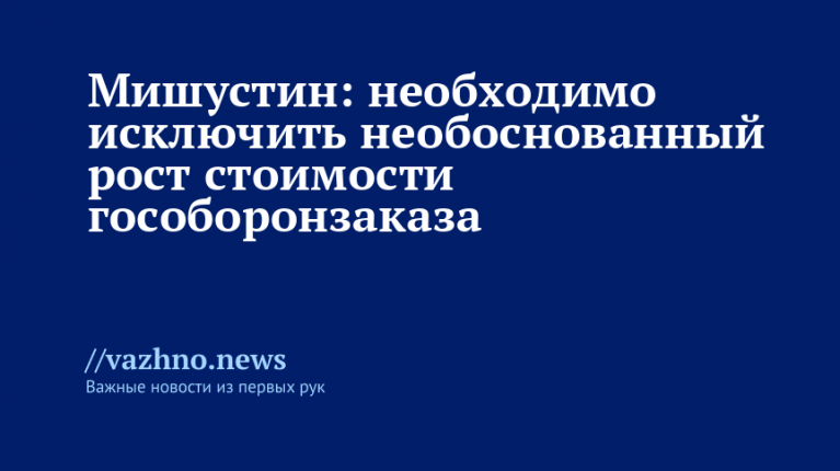 Премьер-министр России Михаил Мишустин заявил о том, что необходимо ужесточить контроль за исполнением государственного оборонного заказа и не допускать необоснованного повышения цен на продукцию. Об этом он сообщил 26 ноября во время встречи с главой Федерального казначейства Романом Артюхиным.