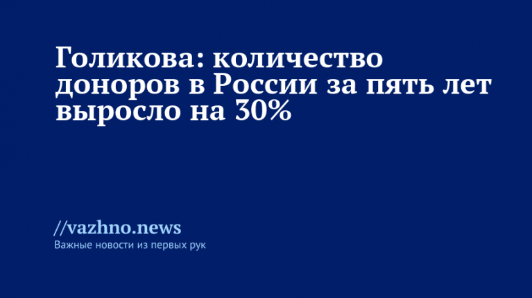 «За последние пять лет, дорогие друзья, число доноров в нашей стране возросло более чем на 30%. В начале ноября мы прошли порог в 2 млн донаций с начала года», — сказала она.