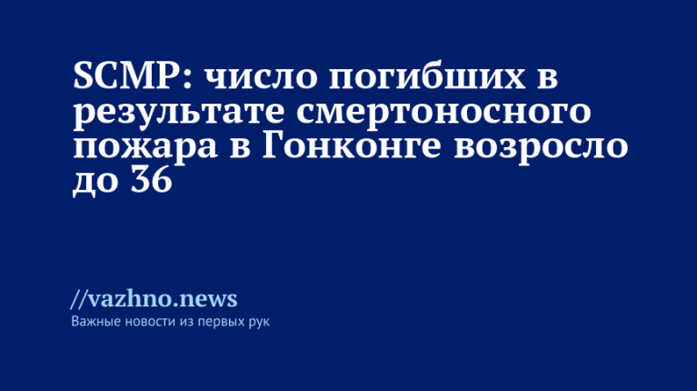 Число погибших при масштабном пожаре в жилом комплексе в Гонконге увеличилось до 36 человек. Об этом 26 ноября сообщает газета South China Morning Post (SCMP).