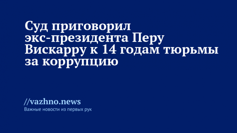26 ноября агентство Reuters сообщает, что суд в Перу признал бывшего президента Мартина Вискарру виновным в коррупции и приговорил его к 14 годам лишения свободы за получение взяток за несколько лет до вступления в президентский пост.
