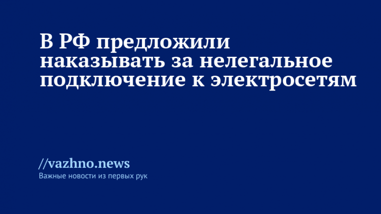 Важное новшествоВ России может появиться уголовная ответственность за самовольное подключение к электросетям. Соответствующий законопроект разработал глава комитета по экономической политике Совета Федерации Андрей Кутепов. Документ сенатор направил на рассмотрение Верховного суда России. Обращение к председателю ВС РФ имеется в распоряжении ТАСС.