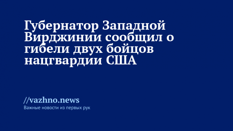 Губернатор американского штата Западная Вирджиния Парик Морриси в сообщении от 26 ноября рассказал о гибели двух военнослужащих национальной гвардии США, которые получили ранения при перестрелке у Белого дома.
