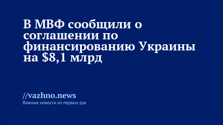 В МВФ сообщили о соглашении по финансированию Украины на $8,1 млрд