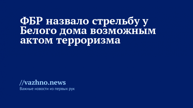 Федерального бюро расследований (ФБР) назвало стрельбу у Белого дома возможным актом терроризма. Об этом 26 ноября сообщил телеканал NBC News.