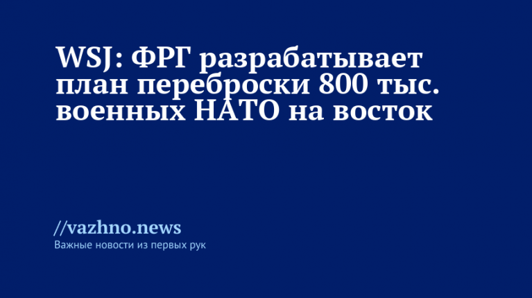 Вооруженные силы (ВС) Германии разрабатывают план на случай конфликта с Россией, согласно которому на предполагаемую линию фронта на востоке будут переброшены до 800 тыс. военных НАТО. Об этом 26 ноября сообщила газета The Wall Street Journal (WSJ) со ссылкой на материалы плана, который называется OPLAN DEU.«План подробно описывает, как до 800 тыс. немецких, американских и других военнослужащих НАТО будут переброшены на восток к линии фронта. На картах обозначены порты, реки, железные дороги и дороги, по которым они будут передвигаться, а также как будет осуществляться их снабжение и защита в пути», — говорится в материале.Отмечается, что сама Германия в рамках плана станет плацдармом для переброски сил, в то время как линия фронта по ее территории проходить не будет.Издание также обращает внимание на ключевые проблемы, с которыми сталкивается Германия при реализации этого сценария, включая бюрократию, ориентированную на мирное время, неподготовленность инфраструктуры к войне, а также необходимость учета новых угроз, таких как массовое применение беспилотников. Ранее, 23 ноября, член финской национально-консервативной партии «Альянс свободы» Армандо Мема сообщил, что главы европейских стран вступят в прямое столкновение с Россией, при этом продолжая вести украинский конфликт.До этого, 15 ноября, премьер-министр Венгрии Виктор Орбан сообщил, что Европа оказалась на грани третьей мировой войны из-за продолжающегося конфликта на Украине. Он также отметил, что Киев находится в таком положении, в котором его можно вынудить согласиться на урегулирование конфликта.Глава минобороны ФРГ Борис Писториус в интервью газете Frankfurter Allgemeine Zeitung 17 ноября заявил, что Россия якобы может напасть на одно из государств НАТО еще до 2029 года. Глава комитета Государственной думы (ГД) РФ по обороне Андрей Картаполов назвал заявление Писториуса выдумкой, подчеркнув, что Россия не рассматривает возможность конфликта с Североатлантическим альянсом и не имеет таких целей.Все важные новости — в канале «Известия» в мессенджере МАХ