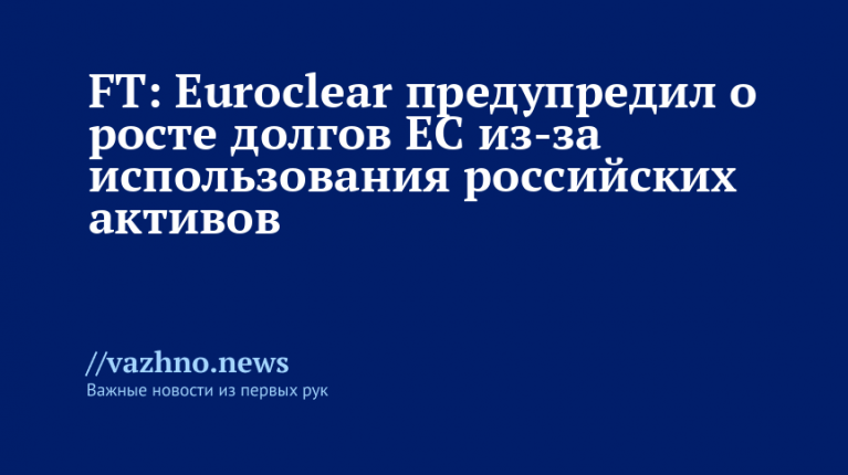 FT: Euroclear предупредил о росте долгов ЕС из-за использования российских активов