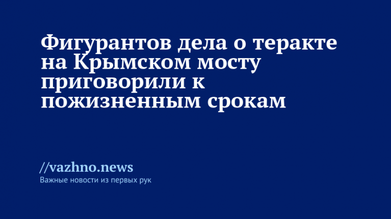 Южный окружной военный суд в Ростове-на-Дону приговорил восьмерых фигурантов дела о теракте на Крымском мосту в 2022 году к пожизненным срокам. Об этом 29 ноября сообщил корреспондент «Известий».