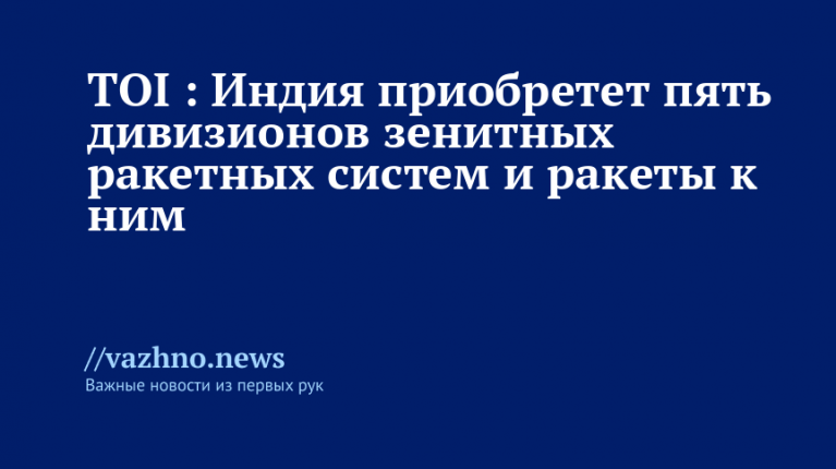 TOI : Индия приобретет пять дивизионов зенитных ракетных систем и ракеты к ним