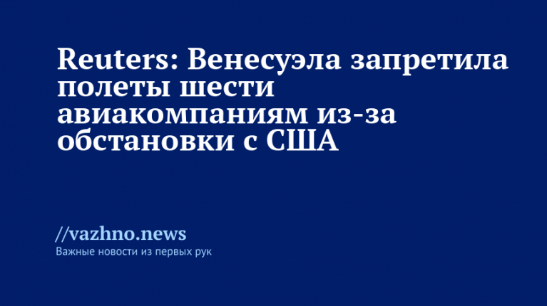 «Управление гражданской авиации Венесуэлы отозвало разрешения у авиакомпаний Iberia, TAP, Avianca, Latam Colombia, Turkish Airlines и Gol. Каракас обвинил перевозчиков в том, что они «присоединились к террористическим действиям, поощряемыми Соединенными Штатами» в одностороннем порядке, прекратив коммерческие полеты», — говорится в материале.