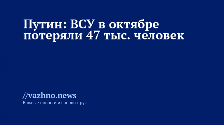 Путин: ВСУ в октябре потеряли 47 тыс. человек