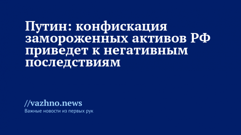 Путин: конфискация замороженных активов РФ приведет к негативным последствиям