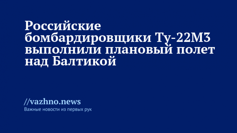 Экипажи дальних бомбардировщиков Ту-22М3 Воздушно-космических сил (ВКС) России выполнили плановый полет в воздушном пространстве над нейтральными водами Балтийского моря. Об этом 27 ноября сообщили в Минобороны РФ.