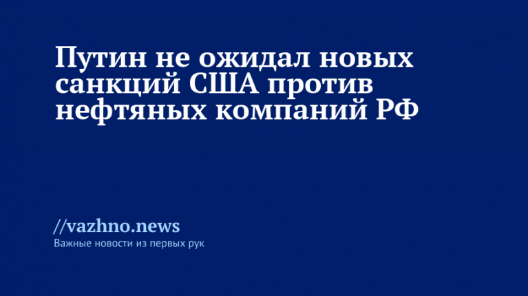 Президент России Владимир Путин, выступая перед журналистами в рамках своего визита в Бишкек 27 ноября, заявил, что санкции США против российских нефтяных компаний стали для него неожиданностью.